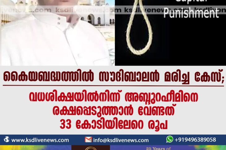 ഗൾഫ് കൈയബദ്ധത്തില് സൗദി ബാലൻ മരിച്ച കേസ്; വധശിക്ഷയില്നിന്ന് അബ്ദുറഹീമിനെ രക്ഷപ്പെടുത്താൻ വേണ്ടത് 33 കോടിയിലേറെ രൂപFebruary 23, 2024