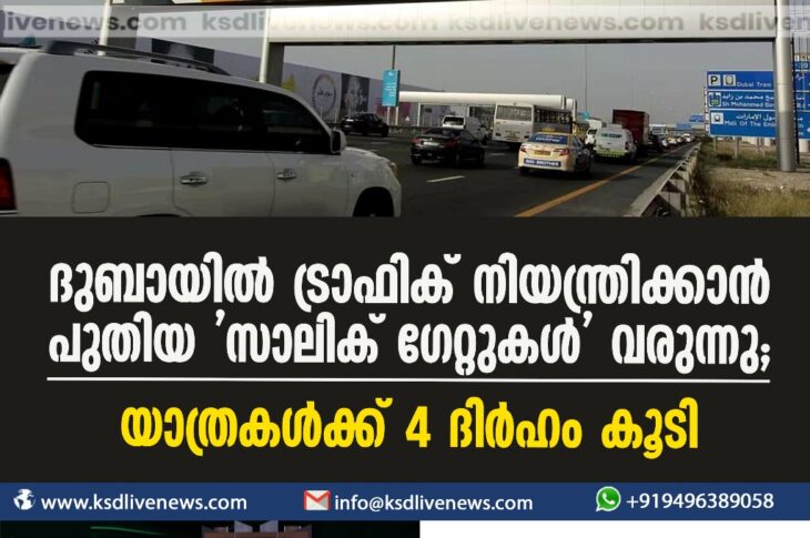 ഗൾഫ് ദുബായിൽ ട്രാഫിക് നിയന്ത്രിക്കാൻ പുതിയ ‘സാലിക് ഗേറ്റുകൾ’ വരുന്നു; യാത്രകൾക്ക് 4 ദിർഹം കൂടിNovember 8, 2023