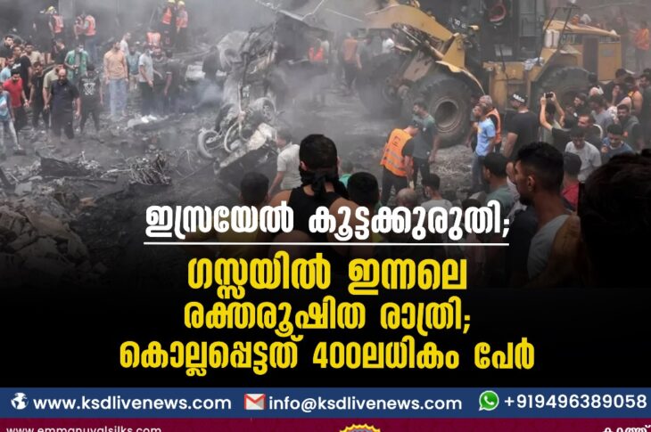 ഗൾഫ്വിദേശം ഇസ്രയേൽ കൂട്ടക്കുരുതി; ഗസ്സയില് ഇന്നലെ രക്തരൂഷിത രാത്രി; കൊല്ലപ്പെട്ടത് 400ലധികം പേര്October 23, 2023