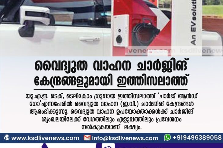 വൈദ്യുത വാഹന ചാർജിങ് കേന്ദ്രങ്ങളുമായി ഇത്തിസലാത്ത്