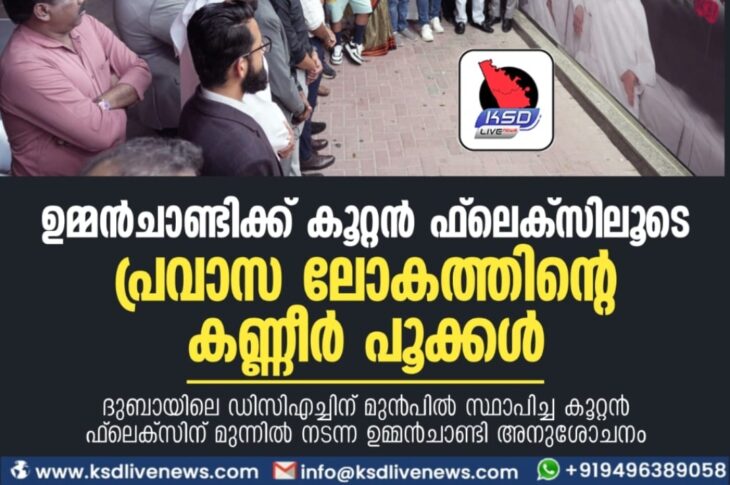 ഉമ്മൻചാണ്ടിക്ക് കൂറ്റൻ ഫ്ലെക്സിലൂടെ പ്രവാസ ലോകത്തിന്റെ കണ്ണീർ പൂക്കൾ