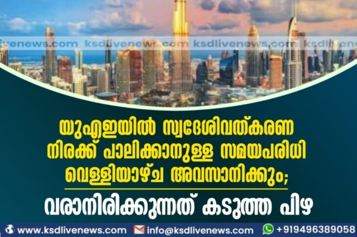 ഗൾഫ് യുഎഇയില് സ്വദേശിവത്കരണ നിരക്ക് പാലിക്കാനുള്ള സമയപരിധി വെള്ളിയാഴ്ച അവസാനിക്കും; വരാനിരിക്കുന്നത് കടുത്ത പിഴJuly 5, 2023