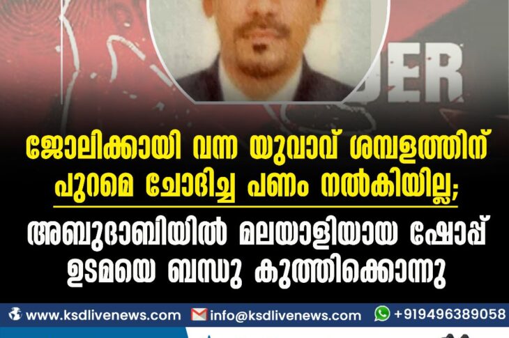 ഗൾഫ് ജോലിക്കായി വന്ന യുവാവ് ശമ്പളത്തിന് പുറമെ ചോദിച്ച പണം നൽകിയില്ല; അബുദാബിയിൽ മലയാളിയായ ഷോപ്പ് ഉടമയെ ബന്ധു കുത്തിക്കൊന്നുMarch 4, 2023