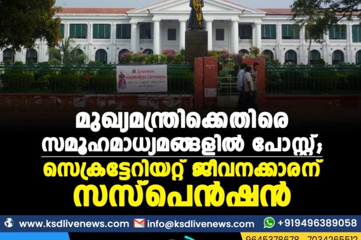ഗൾഫ് മുഖ്യമന്ത്രിക്കെതിരെ സമൂഹമാധ്യമങ്ങളിൽ പോസ്റ്റ്; സെക്രട്ടേറിയറ്റ് ജീവനക്കാരന് സസ്പെൻഷൻFebruary 2, 2022