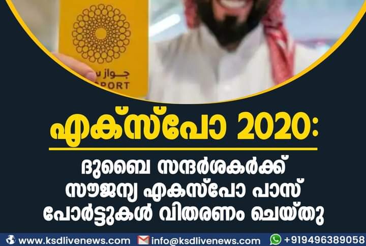 ഗൾഫ് എക്സ്പോ 2020: ദുബൈ സന്ദര്ശകര്ക്ക് സൗജന്യ എകസ്പോ പാസ്പോര്ട്ടുകള് വിതരണം ചെയ്തുNovember 5, 2021