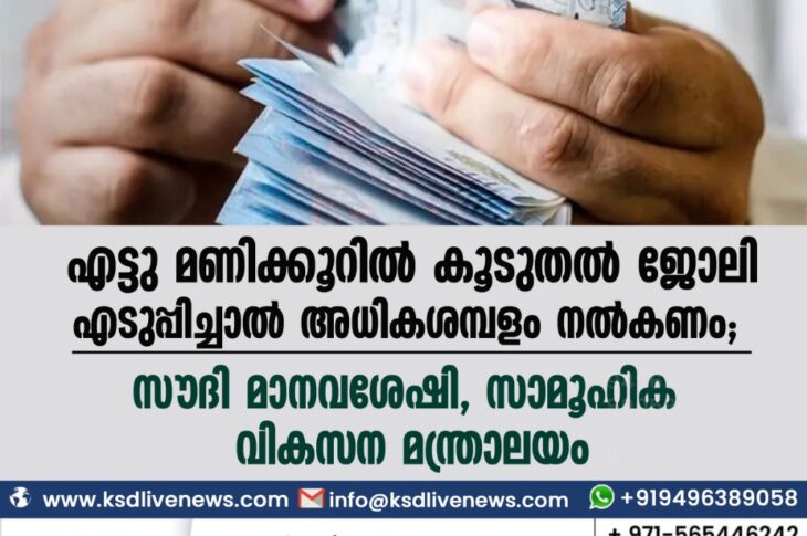 ഗൾഫ് എട്ടു മണിക്കൂറിൽ കൂടുതൽ ജോലിയെടുപ്പിച്ചാൽ അധിക ശമ്പളം നൽകണം: സൗദി മാനവശേഷി, സാമൂഹിക വികസന മന്ത്രാലയംNovember 4, 2021