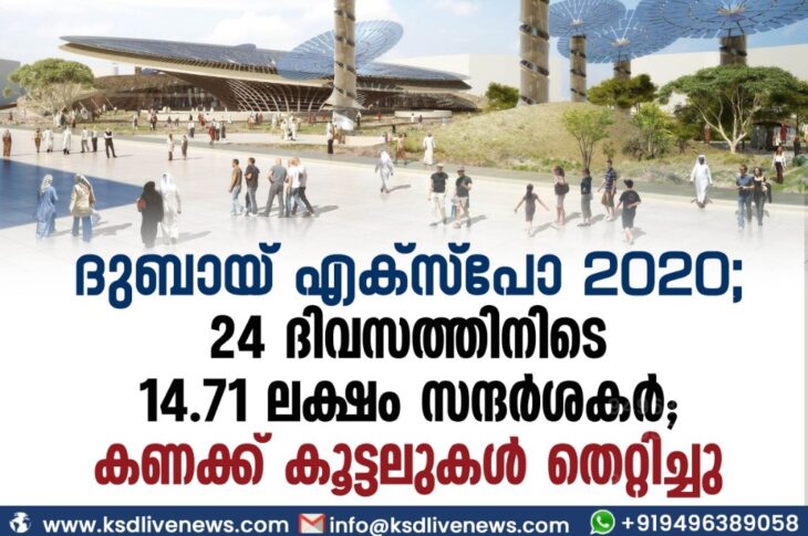 ഗൾഫ് ദുബായ് എക്സ്പോ 2020; 24 ദിവസത്തിനിടെ 14.71 ലക്ഷം സന്ദർശകർ, കണക്ക് കൂട്ടലുകൾ തെറ്റിച്ചുOctober 26, 2021