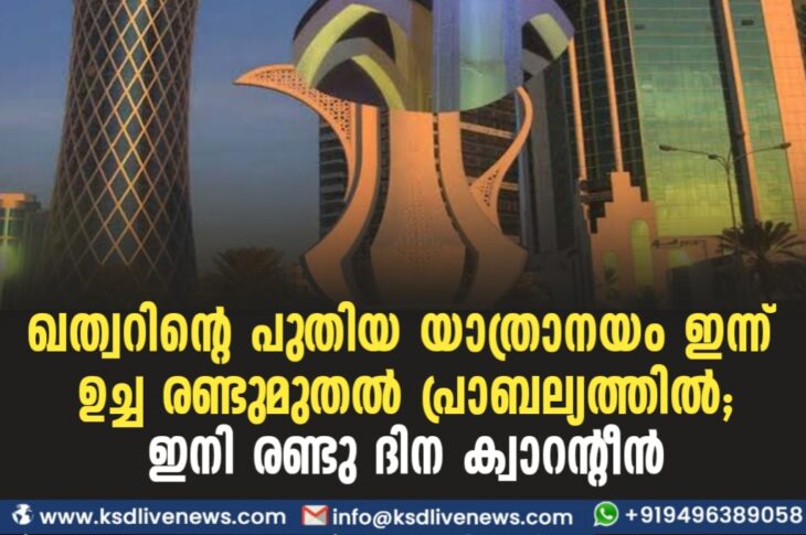 ഗൾഫ് ഖത്വറിന്റെ പുതിയ യാത്രാനയം ഇന്ന് ഉച്ച രണ്ടുമുതൽ പ്രാബല്യത്തിൽ; ഇനി രണ്ടുദിന ക്വാറൻറീൻOctober 6, 2021