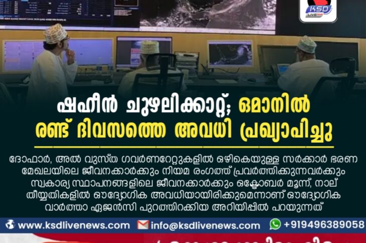 ഗൾഫ് ഒമാനില് ഷഹീന് ചുഴലിക്കാറ്റിന്റെ നേരിട്ടുള്ള ആഘാതം അവസാനിച്ചതായി കാലാവസ്ഥ കേന്ദ്രംOctober 5, 2021