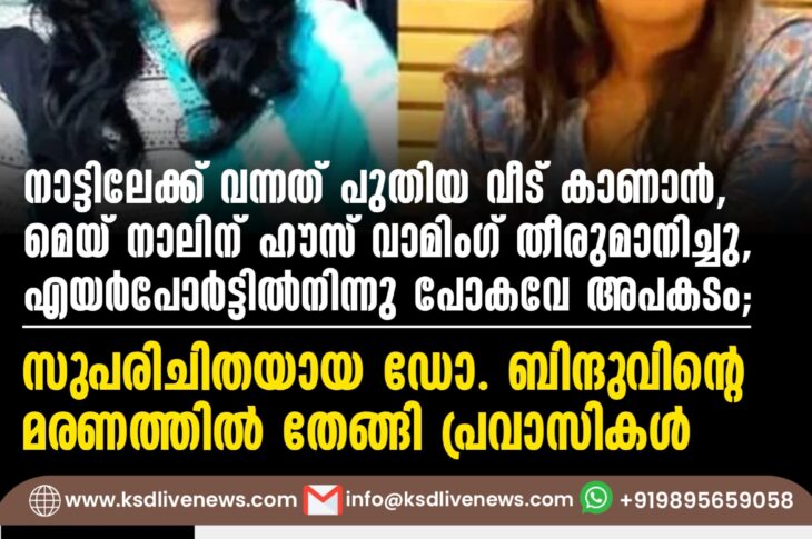 ഗൾഫ് നാട്ടിലേക്ക് വന്നത് പുതിയ വീട് കാണാൻ, മെയ് നാലിന് ഹൗസ് വാമിംഗ് തീരുമാനിച്ചു, എയർപോർട്ടിൽനിന്നു പോകവേ അപകടം; സുപരിചിതയായ ഡോ. ബിന്ദുവിന്റെ മരണത്തിൽ തേങ്ങി പ്രവാസികൾMarch 25, 2025