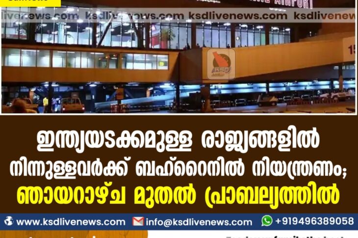 ഗൾഫ് ഇന്ത്യയടക്കമുള്ള രാജ്യങ്ങളില് നിന്നുള്ളവര്ക്ക് ബഹ്റൈനില് നിയന്ത്രണം; ഞായറാഴ്ച മുതല് പ്രാബല്യത്തില്May 21, 2021