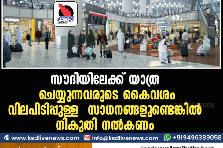 ഗൾഫ് സൗദിയിലേക്ക് യാത്ര ചെയ്യുന്നവരുടെ കൈവശം വിലപിടിപ്പുള്ള സാധനങ്ങളുണ്ടെങ്കില് നികുതി നല്കണംMarch 25, 2021
