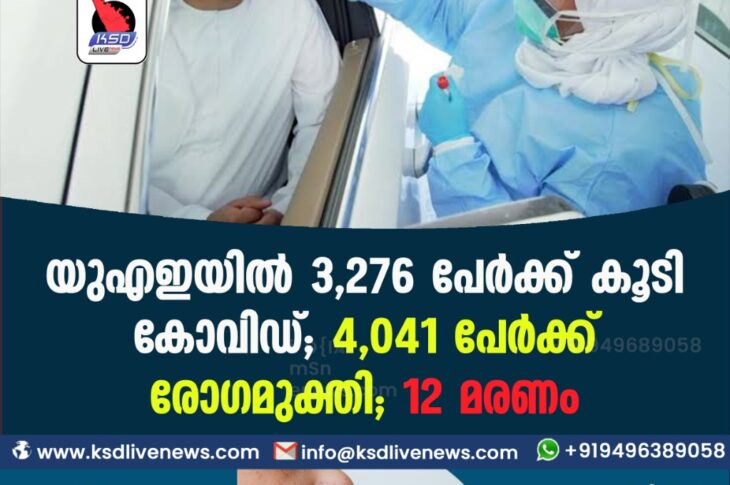 കോവിഡ് 19ഗൾഫ് യുഎഇയില് 24 മണിക്കൂറിനിടെ3,276 പേര്ക്ക് കൂടി കോവിഡ്, 4,041 പേർക്ക് രോഗമുക്തി; 12 മരണംFebruary 6, 2021