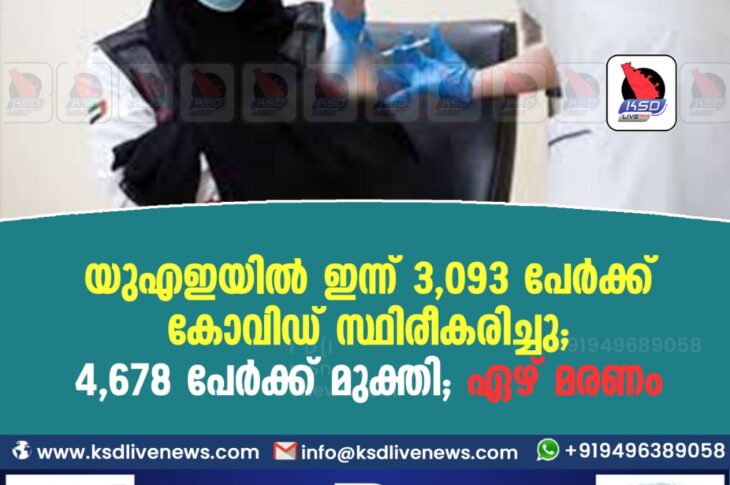 കോവിഡ് 19ഗൾഫ് യുഎഇയില് ഇന്ന് 3,093 പേർക്ക് കോവിഡ് സ്ഥിരീകരിച്ചു; 4,678 പേര്ക്ക് മുക്തി; ഏഴ് മരണംFebruary 7, 2021