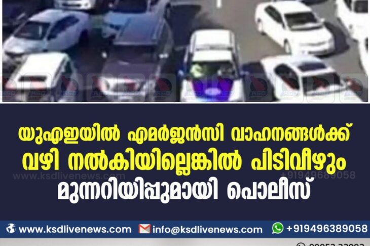 ഗൾഫ് യുഎഇയിൽ എമർജൻസി വാഹനങ്ങൾക്ക് വഴി നൽകിയില്ലെങ്കിൽ പിടിവീഴും മുന്നറിയിപ്പുമായി പൊലീസ്January 28, 2021