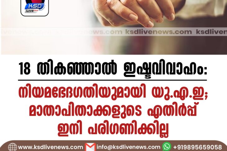 ഗൾഫ് 18 തികഞ്ഞാൽ ഇഷ്ടവിവാഹം; നിയമഭേദഗതിയുമായി യുഎഇ, മാതാപിതാക്കളുടെ എതിർപ്പ് ഇനി പരിഗണിക്കില്ലFebruary 21, 2025