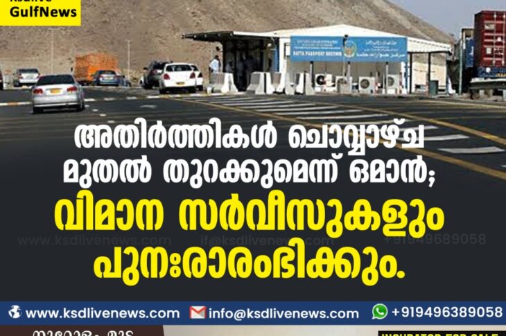 ഗൾഫ് അതിര്ത്തികള് ചൊവ്വാഴ്ച മുതല് തുറക്കുമെന്ന് ഒമാന്; വിമാന സര്വീസുകളും പുനഃരാരംഭിക്കും.December 27, 2020