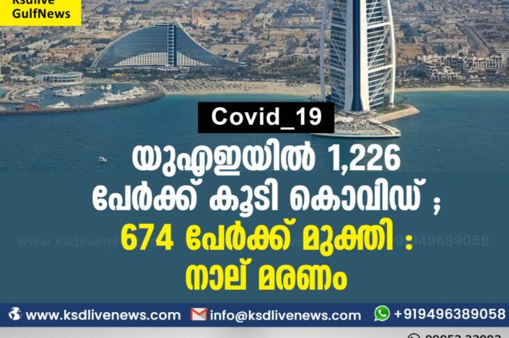 കോവിഡ് 19ഗൾഫ് Covid_19യുഎഇയില് 1,226 പേര്ക്ക് കൂടി കൊവിഡ് ; 674 പേർക്ക് മുക്തി : നാല് മരണംDecember 15, 2020