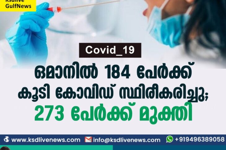 കോവിഡ് 19ഗൾഫ് Covid_19ഒമാനില് 184 പേര്ക്ക് കൂടി കോവിഡ് സ്ഥിരീകരിച്ചു ; 273 പേർക്ക് മുക്തിDecember 17, 2020