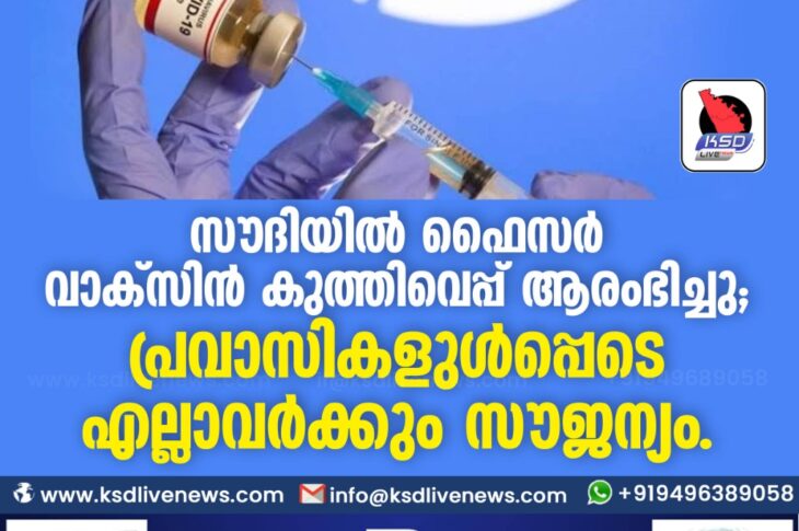 കോവിഡ് 19ഗൾഫ് സൗദിയിൽ ഫൈസർ വാക്സിൻ കുത്തിവെപ്പ് ആരംഭിച്ചു ; പ്രവാസികളുള്പ്പെടെ എല്ലാവര്ക്കും സൗജന്യം.December 17, 2020