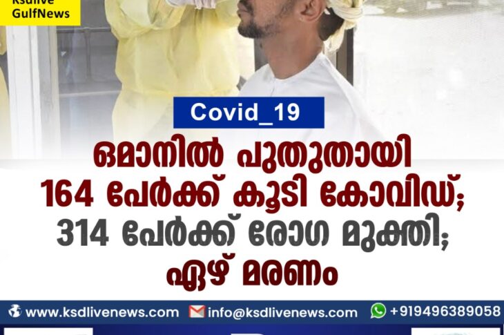 കോവിഡ് 19ഗൾഫ് Covid_19ഒമാനിൽ പുതുതായി 164 പേർക്ക് കൂടി കോവിഡ് ; 314 പേർക്ക് രോഗ മുക്തി ; ഏഴ് മരണംDecember 9, 2020
