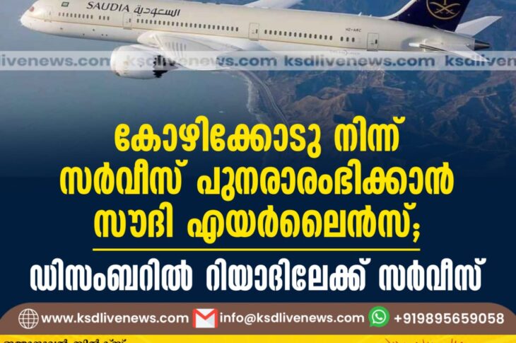 ഗൾഫ് കോഴിക്കോടുനിന്ന് സര്വീസ് പുനരാരംഭിക്കാൻ സൗദി എയര്ലൈൻസ്; ഡിസംബറില് റിയാദിലേക്ക് സര്വീസ്October 17, 2024