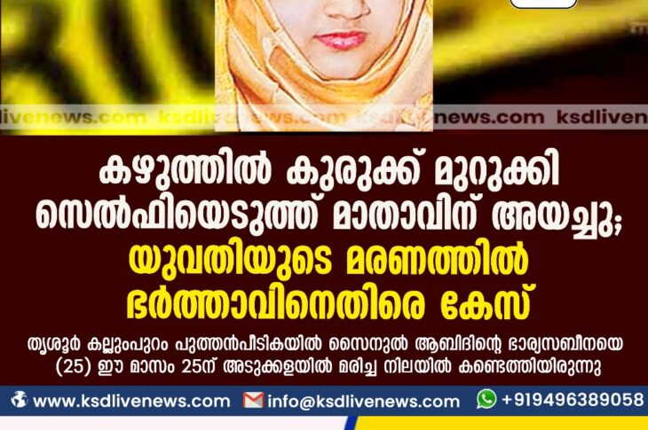 കേരളംചരമം കഴുത്തിൽ കുരുക്ക് മുറുക്കി സെൽഫിയെടുത്ത് മാതാവിന് അയച്ചു; യുവതിയുടെ മരണത്തിൽ ഭർത്താവിനെതിരെ കേസ്October 30, 2023