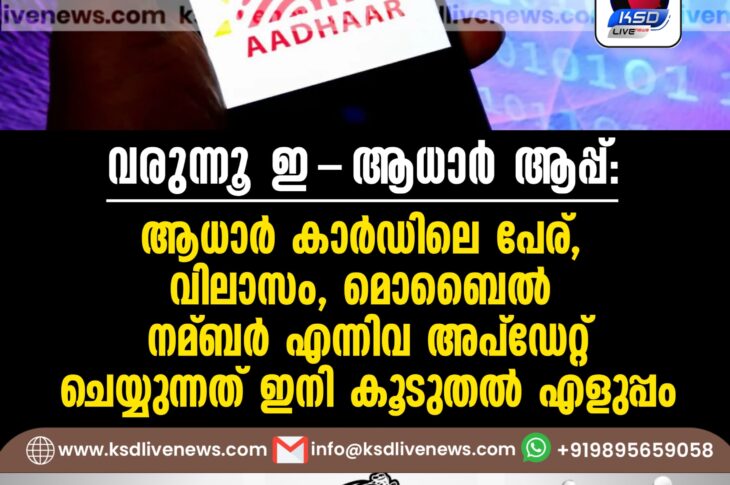 ടെക്ദേശീയം വരുന്നൂ ഇ-ആധാര് ആപ്പ്: ആധാര് കാര്ഡിലെ പേര്, വിലാസം, മൊബൈല് നമ്ബര് എന്നിവ അപ്ഡേറ്റ് ചെയ്യുന്നത് ഇനി കൂടുതല് എളുപ്പംSeptember 20, 2025