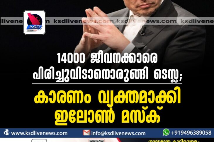 ടെക്വിദേശം 14000 ജീവനക്കാരെ പിരിച്ചുവിടാനൊരുങ്ങി ടെസ്ല; കാരണം വ്യക്തമാക്കി ഇലോണ് മസ്ക്April 16, 2024