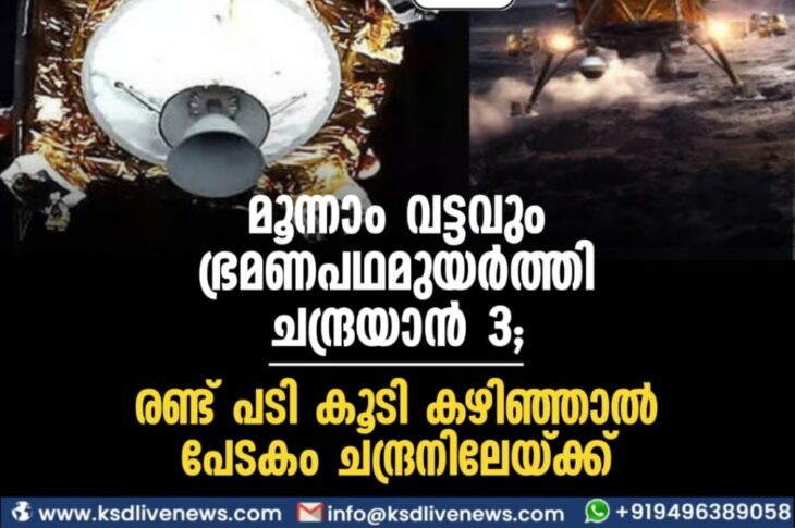 ടെക് മൂന്നാം വട്ടവും ഭ്രമണപഥമുയർത്തി ചന്ദ്രയാൻ 3; രണ്ട് പടി കൂടി കഴിഞ്ഞാൽ പേടകം ചന്ദ്രനിലേയ്ക്ക്July 18, 2023