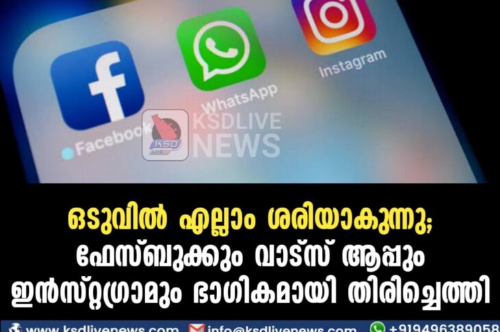 ടെക് ഒടുവില് എല്ലാം ശരിയാകുന്നു; ഫേസ്ബുക്കും വാട്സ് ആപ്പും ഇന്സ്റ്റഗ്രാമും ഭാഗികമായി തിരിച്ചെത്തിOctober 5, 2021