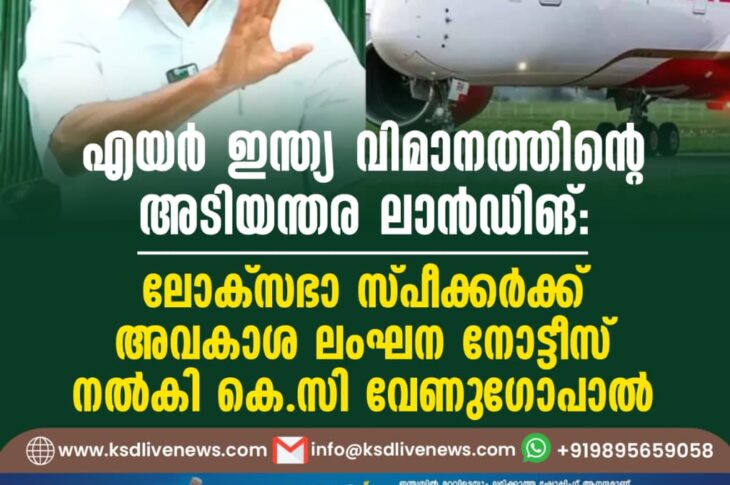 ദേശീയം എയര് ഇന്ത്യ വിമാനത്തിന്റെ അടിയന്തര ലാന്ഡിങ്: ലോക്സഭാ സ്പീക്കര്ക്ക് അവകാശ ലംഘന നോട്ടീസ് നല്കി കെ.സി വേണുഗോപാല്August 12, 2025