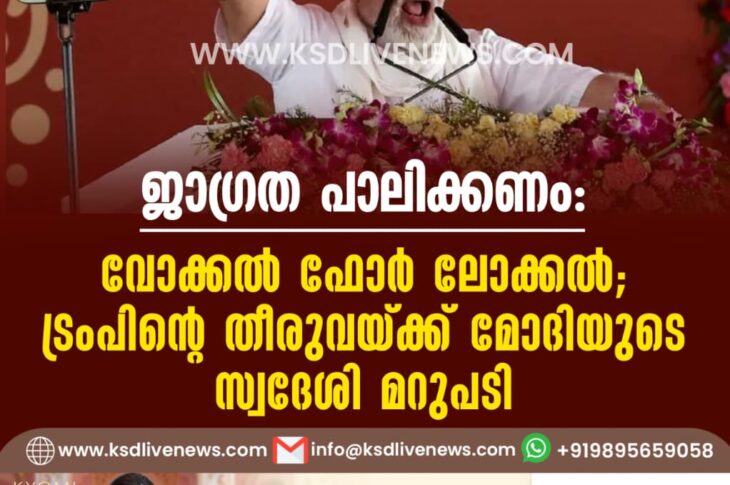 ദേശീയം ജാഗ്രത പാലിക്കണം: വോക്കൽ ഫോർ ലോക്കൽ; ട്രംപിന്റെ തീരുവയ്ക്ക് മോദിയുടെ സ്വദേശി മറുപടിAugust 2, 2025