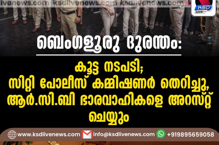 ദേശീയം ബെംഗളൂരു ദുരന്തം: കൂട്ട നടപടി; സിറ്റി പോലീസ് കമ്മിഷണര് തെറിച്ചു, ആർ.സി.ബി ഭാരവാഹികളെ അറസ്റ്റ് ചെയ്യുംJune 5, 2025