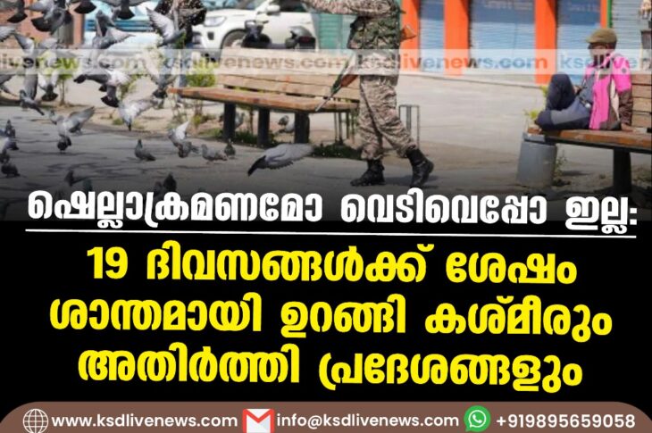 ദേശീയം ഷെല്ലാക്രമണമോ വെടിവെപ്പോ ഇല്ല; 19 ദിവസങ്ങൾക്ക് ശേഷം ശാന്തമായി ഉറങ്ങി കശ്മീരും അതിർത്തി പ്രദേശങ്ങളുംMay 12, 2025