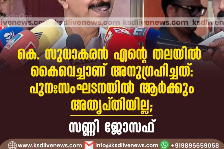 ദേശീയം കെ. സുധാകരൻ എന്റെ തലയിൽ കൈവെച്ചാണ് അനുഗ്രഹിച്ചത്: പുനഃസംഘടനയിൽ ആർക്കും അതൃപ്തിയില്ല; സണ്ണി ജോസഫ്May 13, 2025