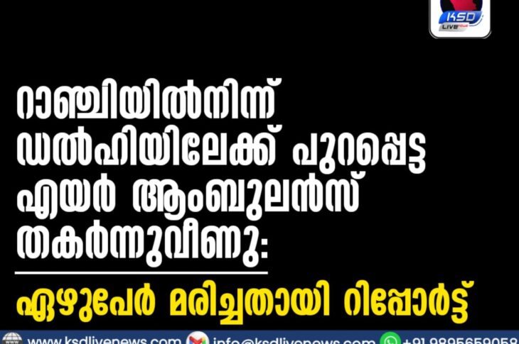 ദേശീയം റാഞ്ചിയിൽനിന്ന് ഡൽഹിയിലേക്ക് പുറപ്പെട്ട എയർ ആംബുലൻസ് തകർന്നുവീണു, ഏഴുപേർ മരിച്ചതായി റിപ്പോർട്ട്February 24, 2026