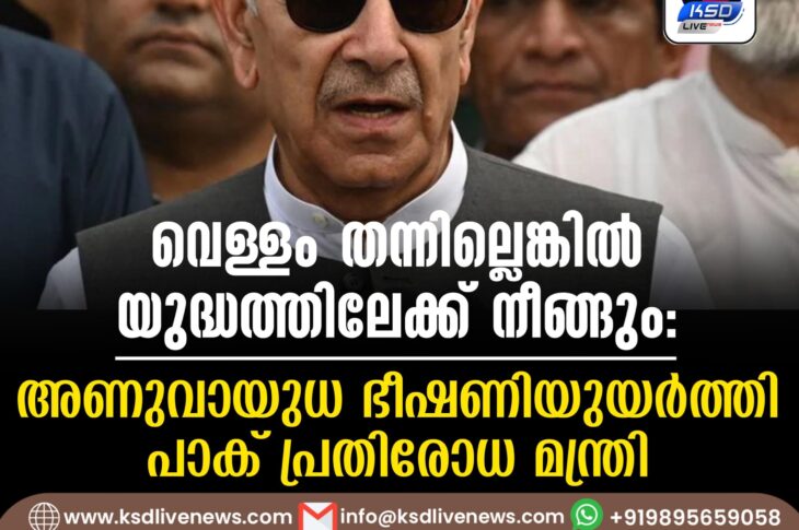 ദേശീയം വെള്ളം തന്നില്ലെങ്കിൽ യുദ്ധത്തിലേക്ക് നീങ്ങും: അണുവായുധ ഭീഷണിയുയര്ത്തി പാക് പ്രതിരോധ മന്ത്രിApril 26, 2025