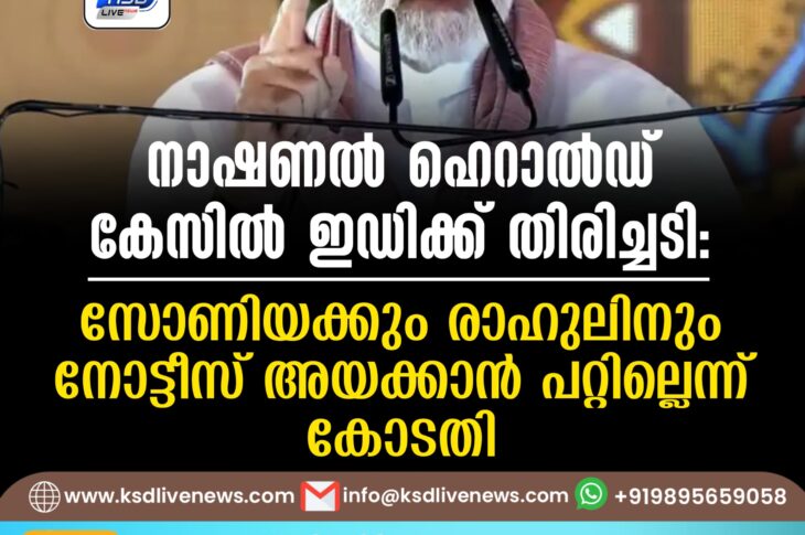 ദേശീയം നാഷണൽ ഹെറാൽഡ് കേസിൽ ഇഡിക്ക് തിരിച്ചടി: സോണിയക്കും രാഹുലിനും നോട്ടീസ് അയക്കാൻ പറ്റില്ലെന്ന് കോടതിApril 25, 2025