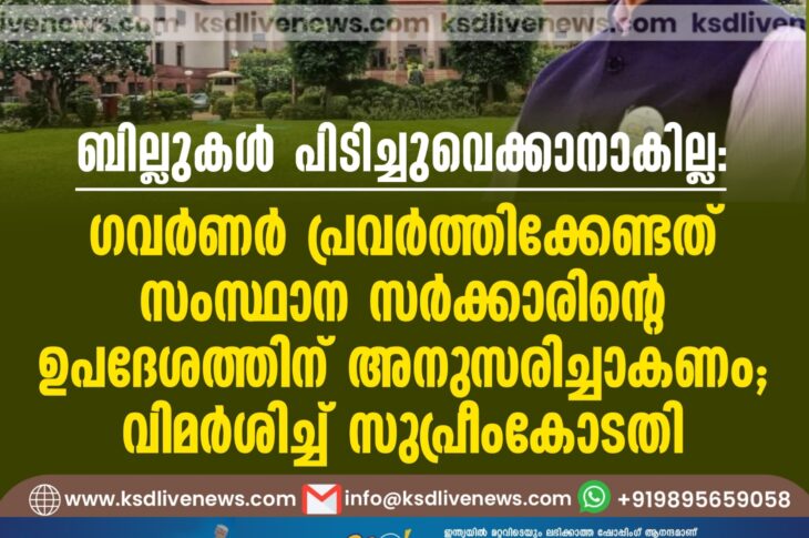 ദേശീയം ബില്ലുകൾ പിടിച്ചുവെക്കാനാകില്ല: ഗവർണർ പ്രവർത്തിക്കേണ്ടത് സംസ്ഥാന സർക്കാരിൻ്റെ ഉപദേശത്തിന് അനുസരിച്ചാകണം; വിമർശിച്ച് സുപ്രീംകോടതിApril 8, 2025