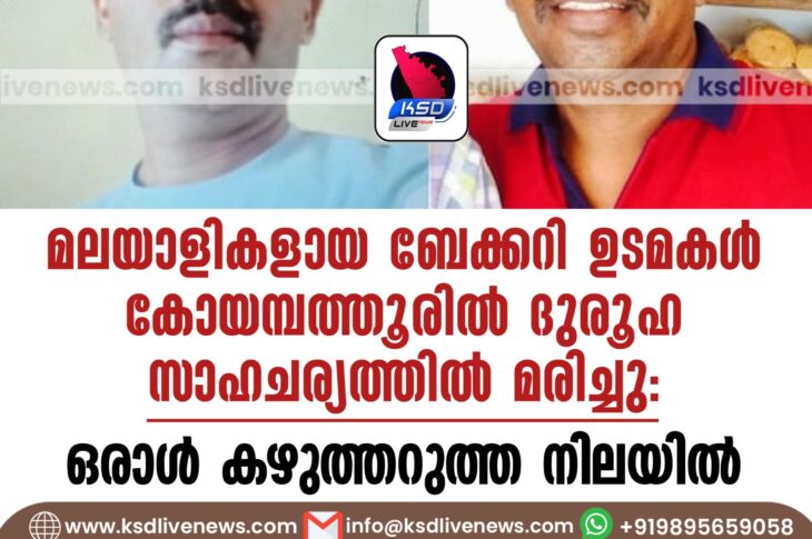ദേശീയം മലയാളികളായ ബേക്കറി ഉടമകൾ കോയമ്പത്തൂരിൽ ദുരൂഹ സാഹചര്യത്തിൽ മരിച്ചു; ഒരാൾ കഴുത്തറുത്ത നിലയിൽApril 8, 2025