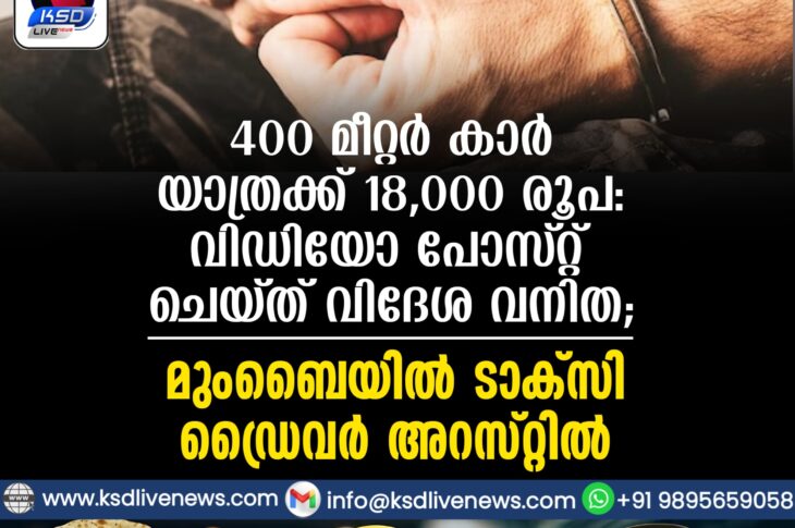 ദേശീയം 400 മീറ്റർ കാർ യാത്രക്ക് 18,000 രൂപ: വിഡിയോ പോസ്റ്റ് ചെയ്ത് വിദേശ വനിത; മുംബൈയിൽ ടാക്സി ഡ്രൈവർ അറസ്റ്റിൽJanuary 30, 2026