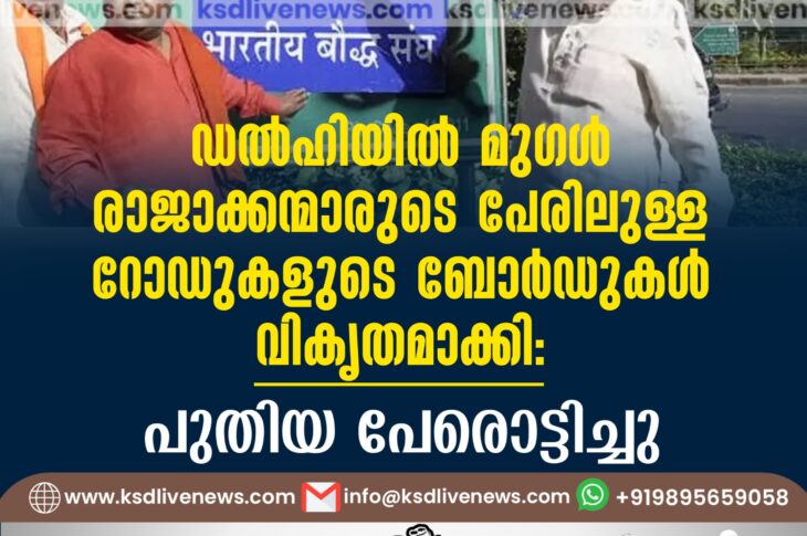 ദേശീയം ഡല്ഹിയില് മുഗള് രാജാക്കന്മാരുടെ പേരിലുള്ള റോഡുകളുടെ ബോര്ഡുകള് വികൃതമാക്കി; പുതിയ പേരൊട്ടിച്ചുMarch 28, 2025