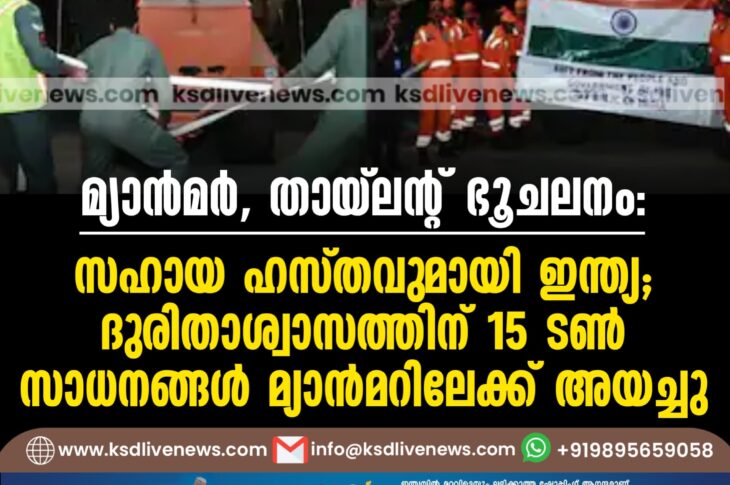 ദേശീയം മ്യാൻമർ, തായ്ലന്റ് ഭൂചലനം: സഹായ ഹസ്തവുമായി ഇന്ത്യ; ദുരിതാശ്വാസത്തിന് 15 ടൺ സാധനങ്ങൾ മ്യാൻമറിലേക്ക് അയച്ചുMarch 29, 2025