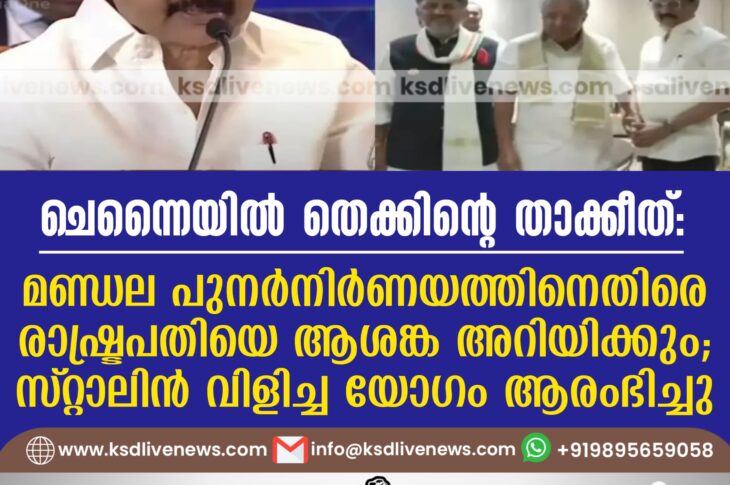 ദേശീയം ചെന്നൈയില് തെക്കിന്റെ താക്കീത്; മണ്ഡല പുനര്നിര്ണയത്തിനെതിരെ രാഷ്ട്രപതിയെ ആശങ്ക അറിയിക്കും; സ്റ്റാലിൻ വിളിച്ച യോഗം ആരംഭിച്ചുMarch 22, 2025