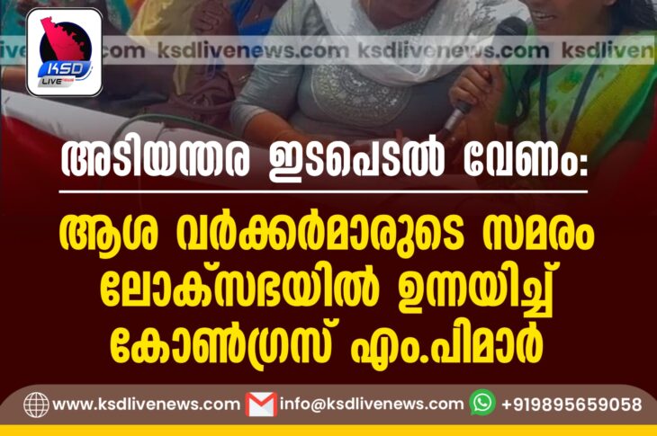 ദേശീയം അടിയന്തര ഇടപെടൽ വേണം: ആശ വർക്കർമാരുടെ സമരം ലോക്സഭയിൽ ഉന്നയിച്ച് കോൺഗ്രസ് എം.പിമാർMarch 10, 2025