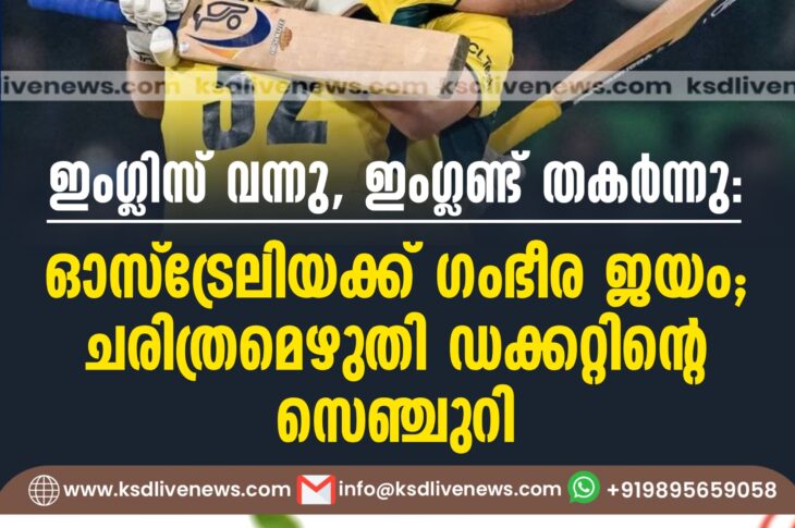 ദേശീയം ഇംഗ്ലിസ് വന്നു, ഇംഗ്ലണ്ട് തകര്ന്നു: ഓസ്ട്രേലിയക്ക് ഗംഭീര ജയം; ചരിത്രമെഴുതി ഡക്കറ്റിന്റെ സെഞ്ചുറിFebruary 22, 2025