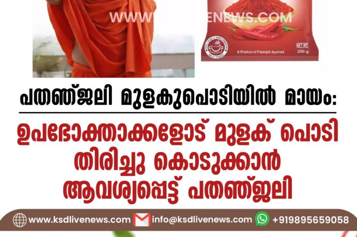 ദേശീയം പതഞ്ജലി മുളകുപൊടിയില് മായം : ഉപഭോക്താക്കളോട് മുളക് പൊടി തിരിച്ചു കൊടുക്കാൻ ആവശ്യപ്പെട്ട് പതഞ്ജലിJanuary 25, 2025