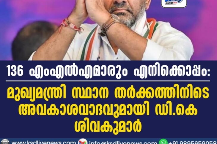 ദേശീയം 136 എംഎൽഎമാരും എനിക്കൊപ്പം: മുഖ്യമന്ത്രി സ്ഥാന തർക്കത്തിനിടെ അവകാശവാദവുമായി ഡി.കെ ശിവകുമാർFebruary 10, 2026