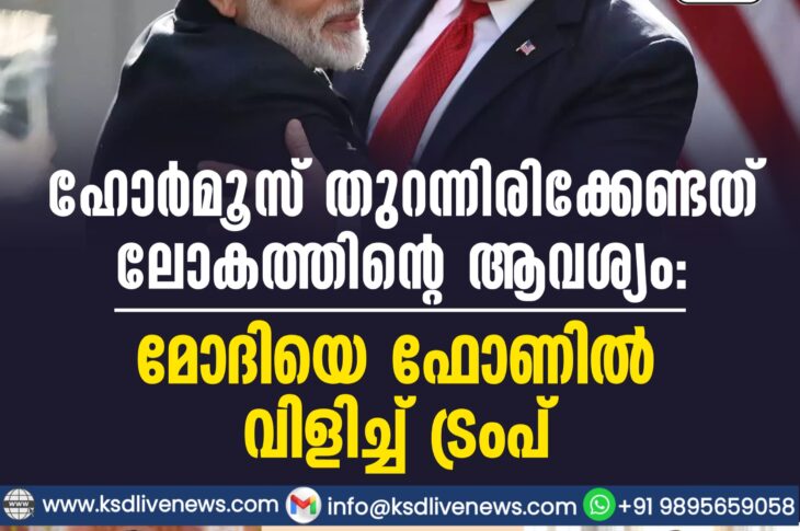 ദേശീയം ഹോർമുസ് കടലിടുക്ക് തുറക്കണം, പ്രഥമ പരിഗണന ഗൾഫിലെ ഒരു കോടിയിലധികം ഇന്ത്യക്കാരുടെ സുരക്ഷയ്ക്ക്; പ്രധാനമന്ത്രിMarch 24, 2026